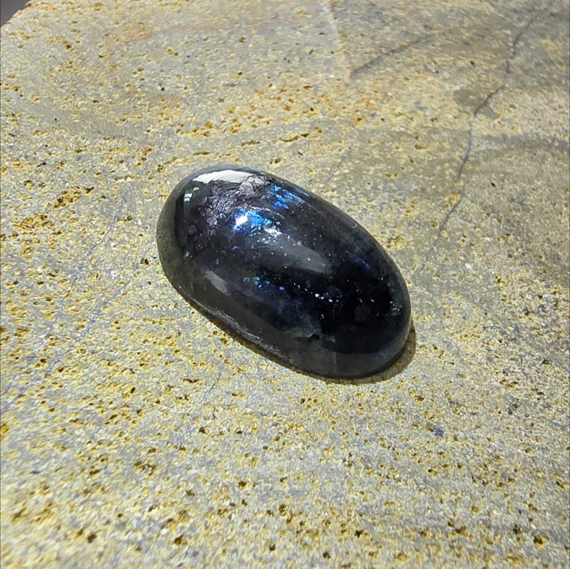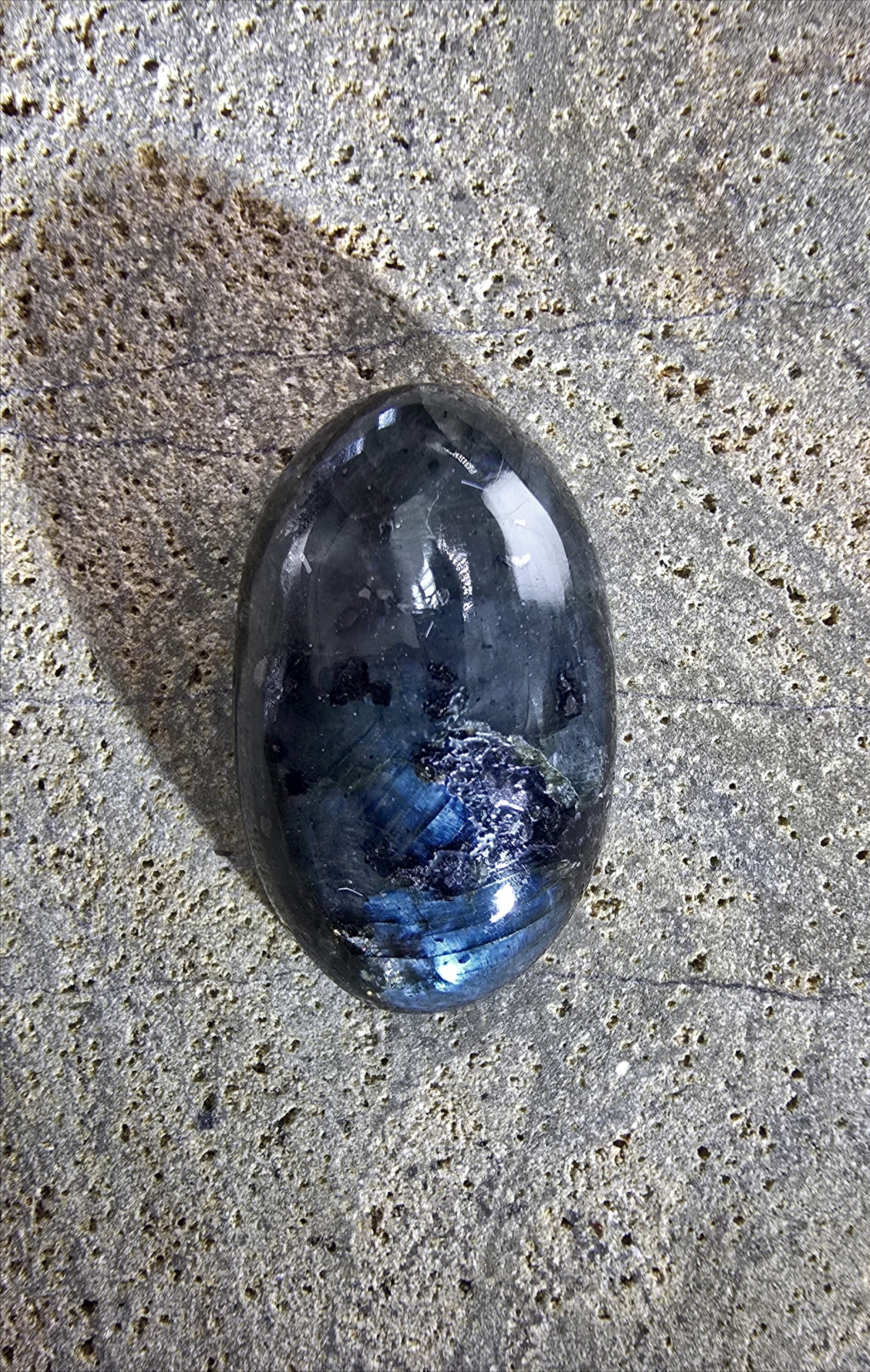 Prachtig geslepen Cabochon van A+ kwaliteit Larvikiet met prachtig blauwe Labrodariscentie.