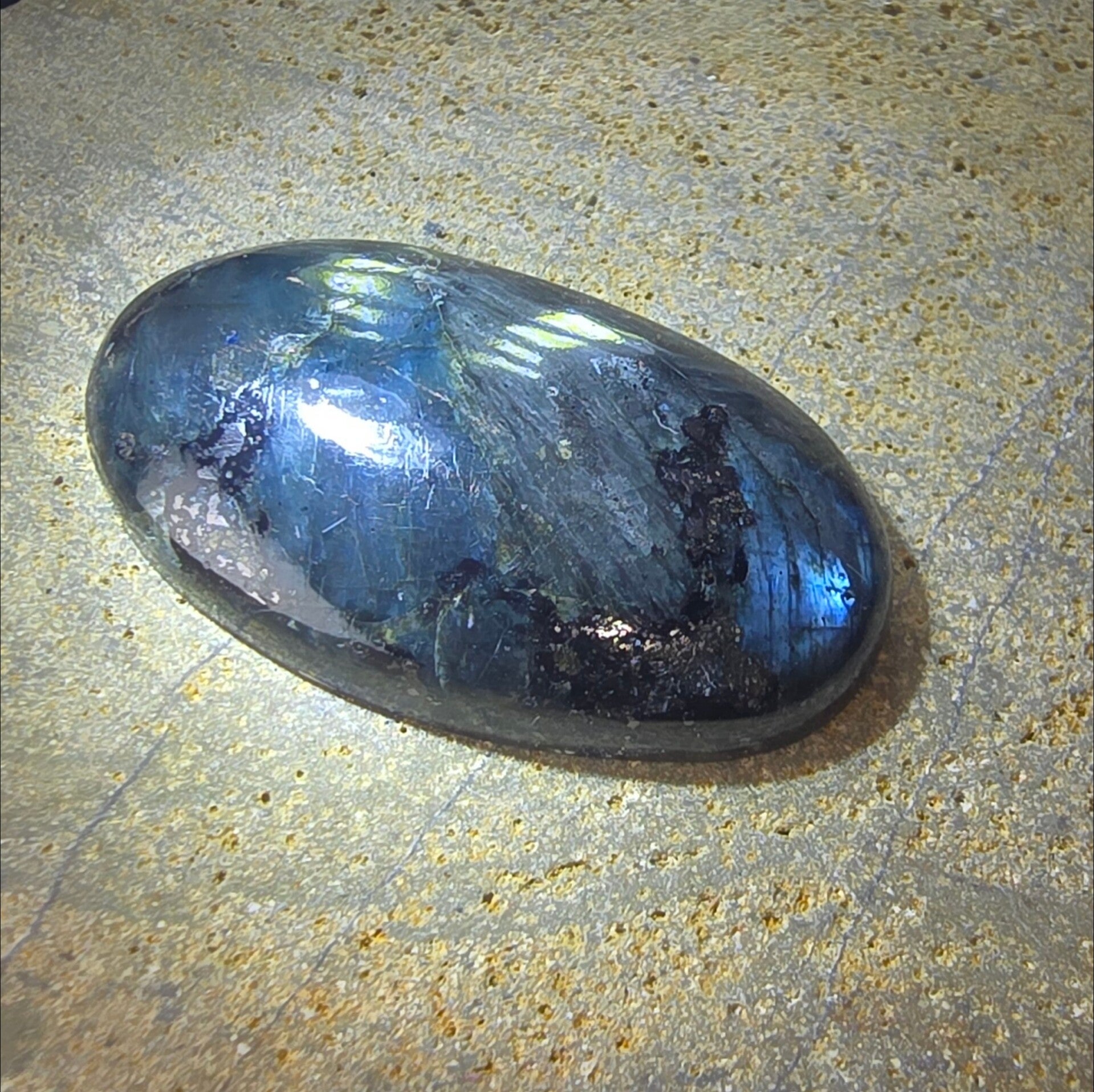 Prachtig geslepen Cabochon van A+ kwaliteit Larvikiet met prachtig blauwe Labrodariscentie.