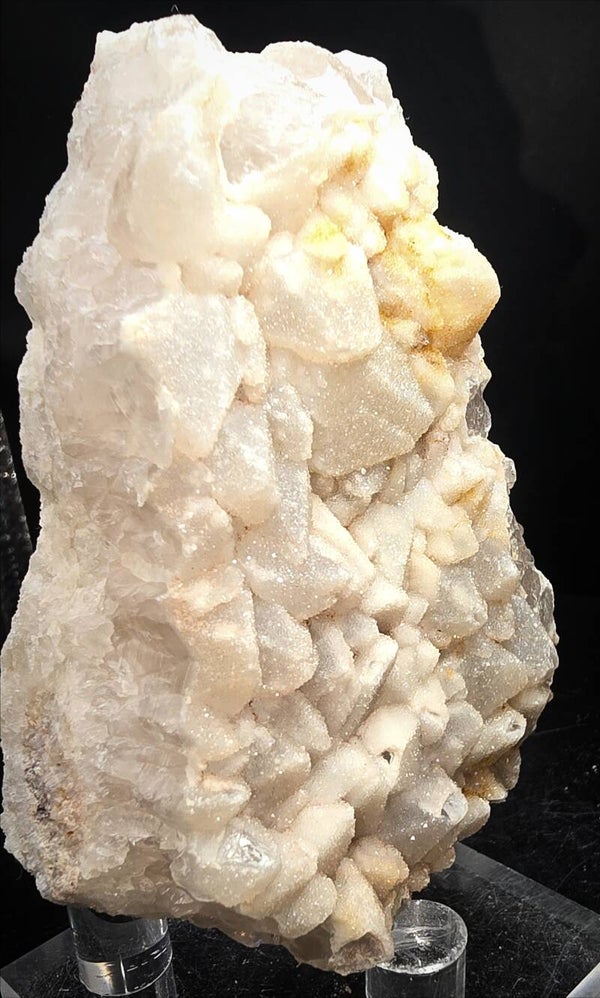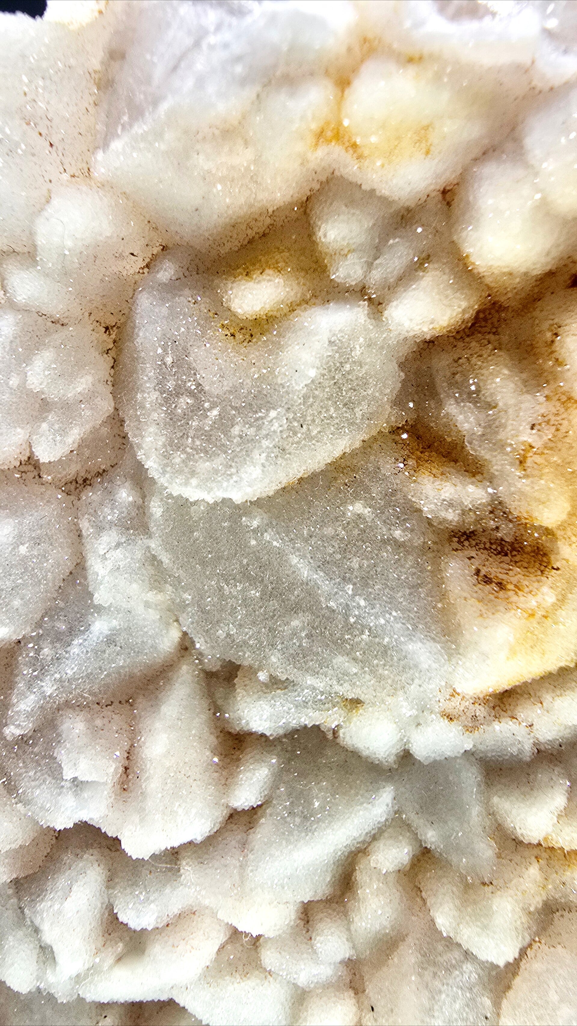 Prachtig exemplaar van een rook kwarts plaat onder een deken van sneeuw witte suiker kwarts.