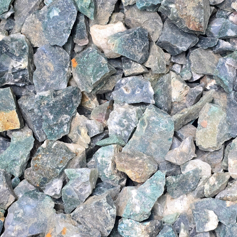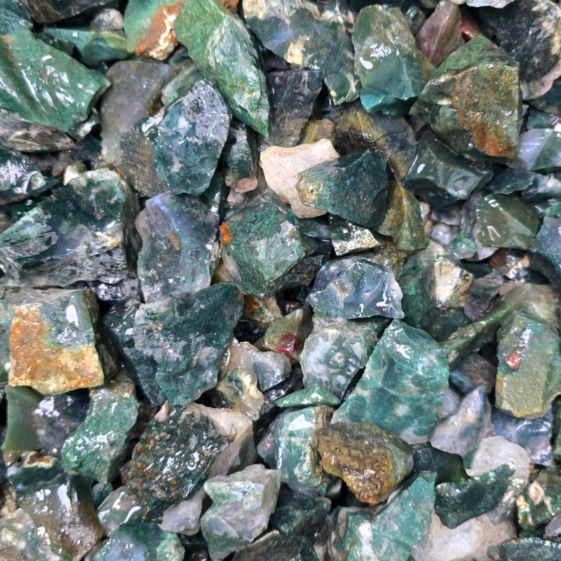 Ongesorteerd ruw Mos agaat split van gemixte kwaliteit. Perfect om in de kleinere tumbler te gebruiken!