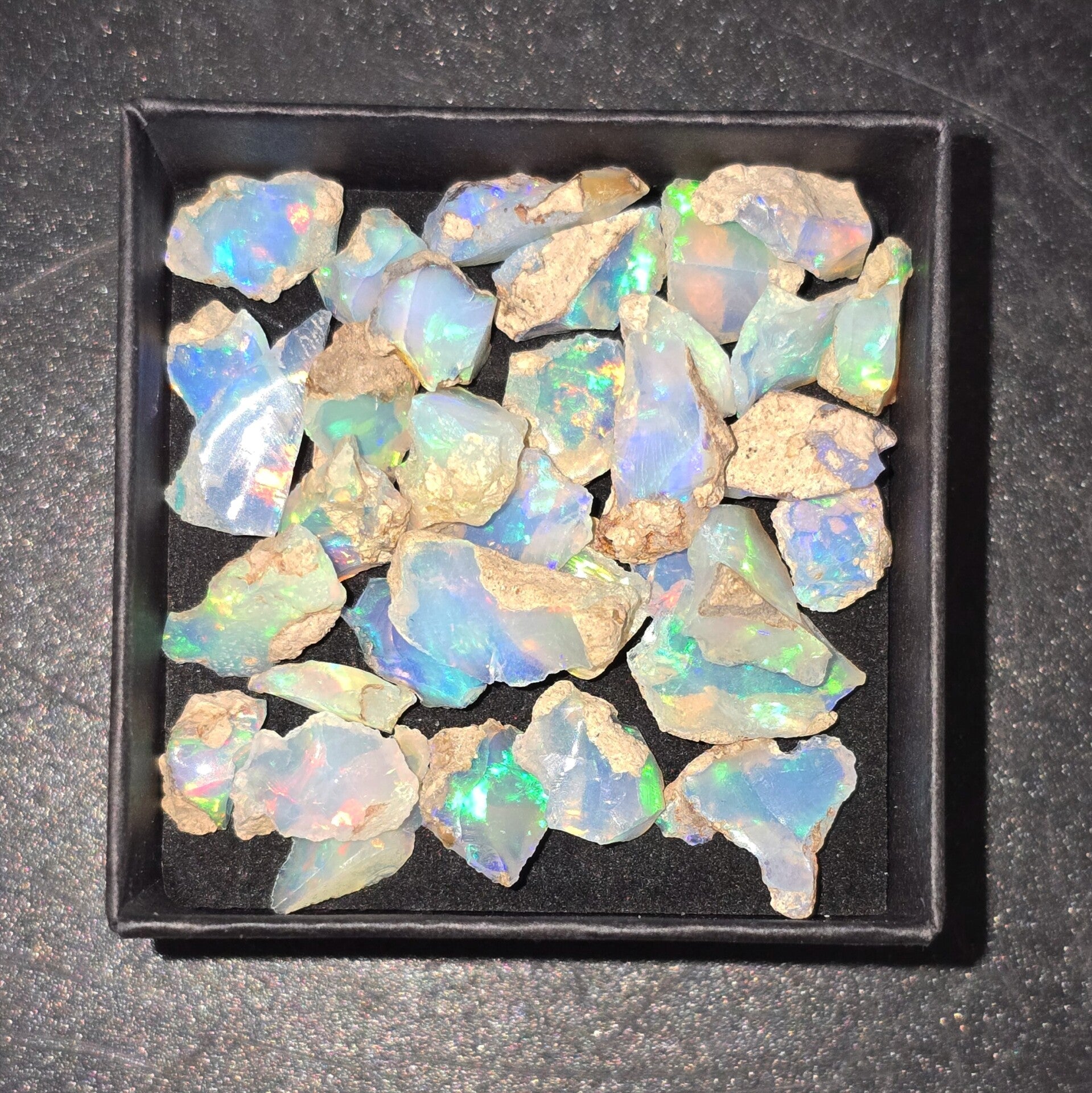 Het gaat hier om droge opaal dus geschikt voor sieraden, leg deze opalen niet in water zoals de water-opalen! hier kan de opaal tijdelijk zijn kleuren van verliezen!
