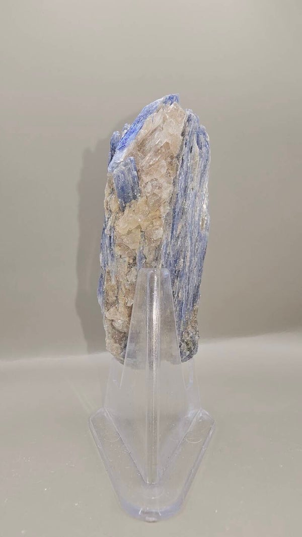 Deze blauwe kyaniet is geen standaard handelsmateriaal, maar een zorgvuldig geselecteerd natuurstuk.